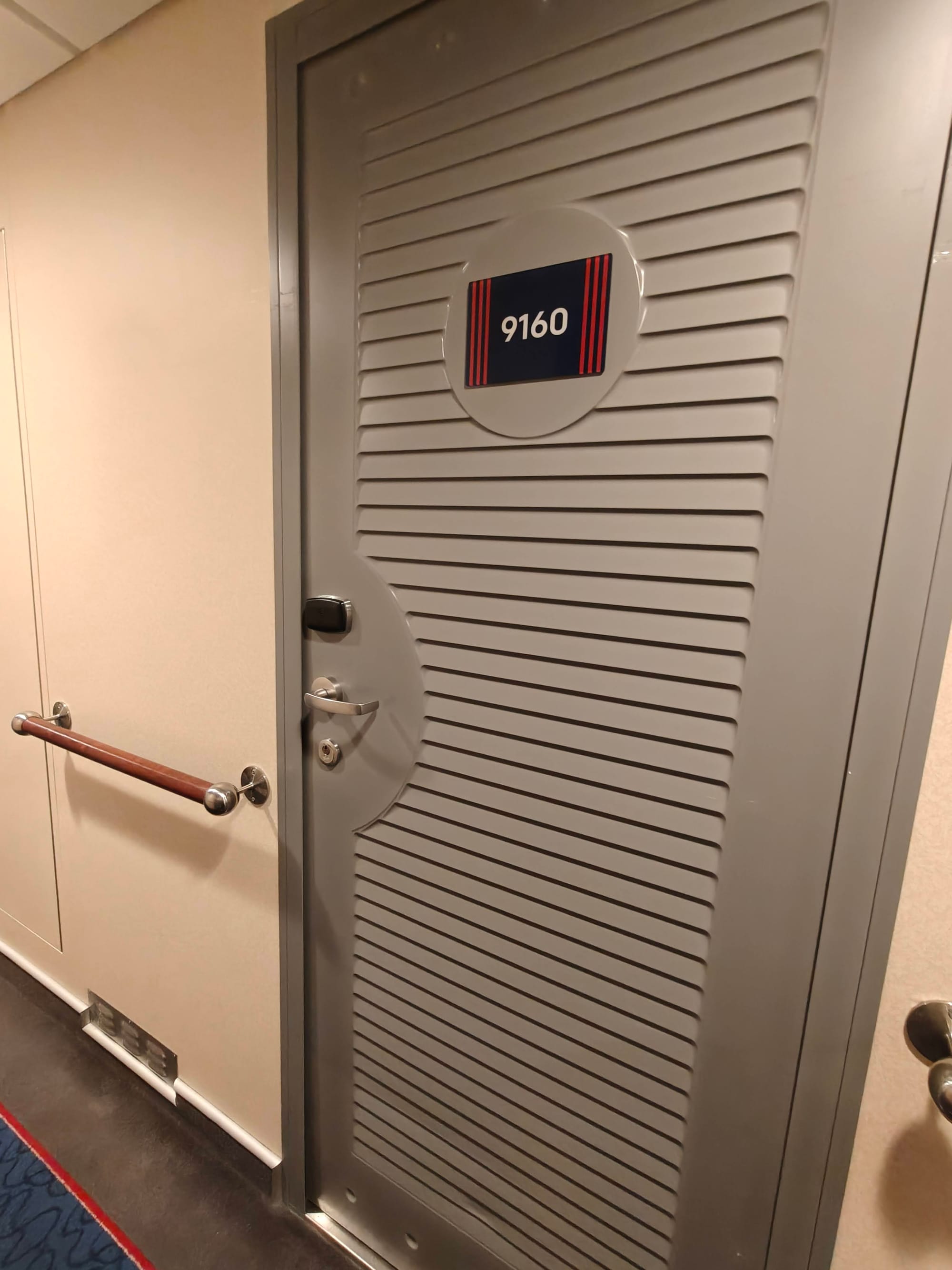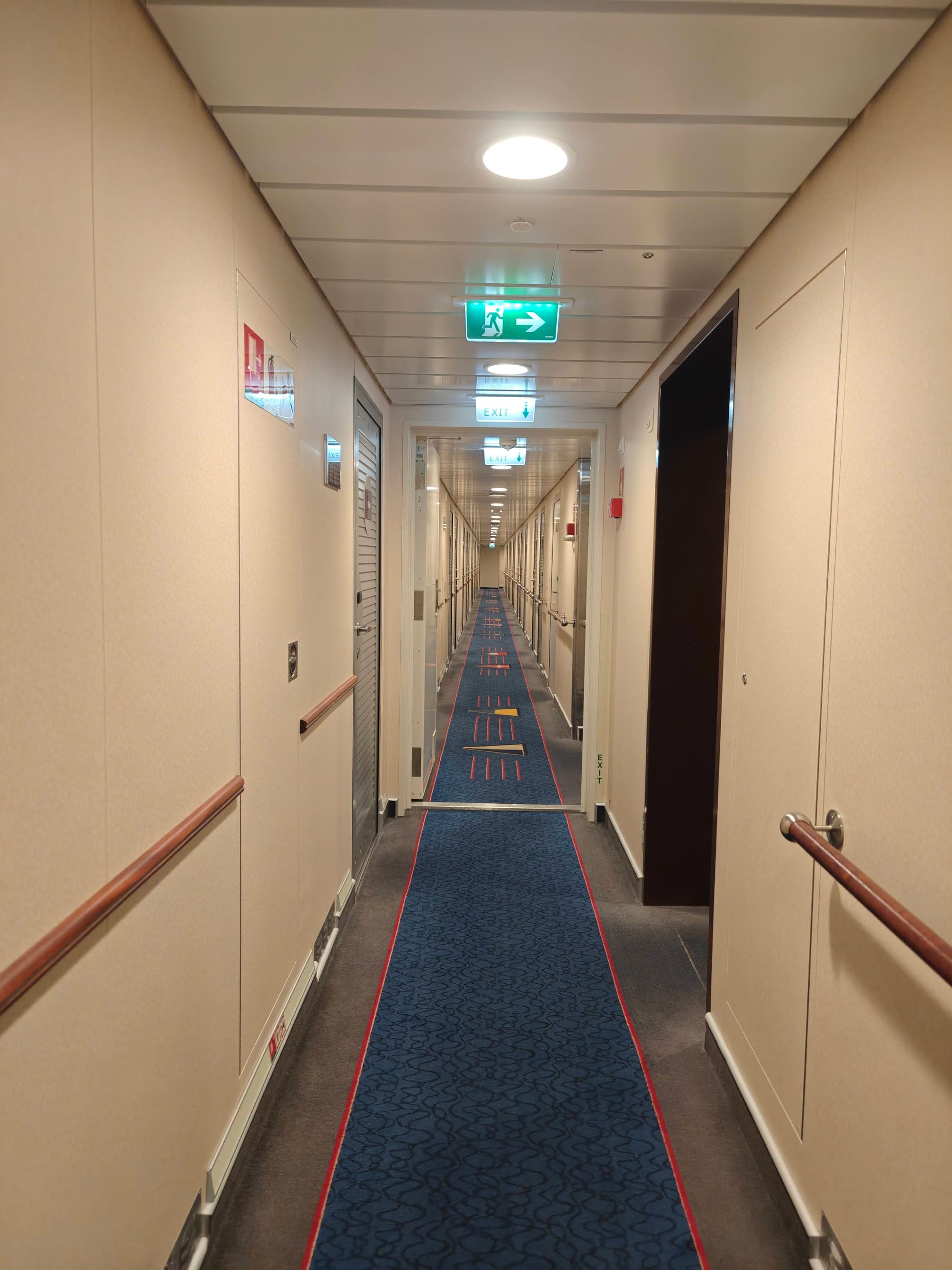 - Gangene utenfor lugarene er smale og lange, og farge- og designvalget på dørene er spesielt, noe som får det til å føles litt som et lagerlokale.