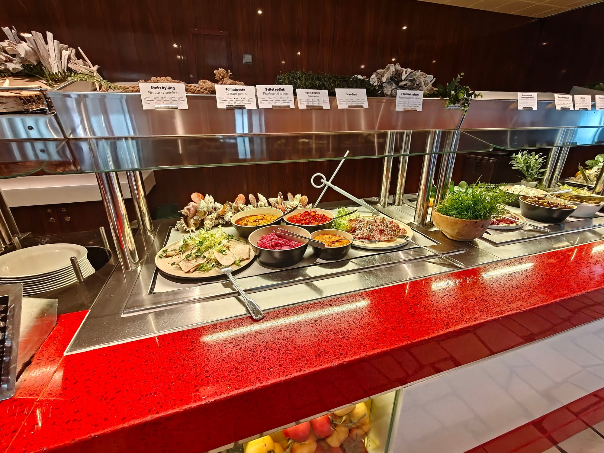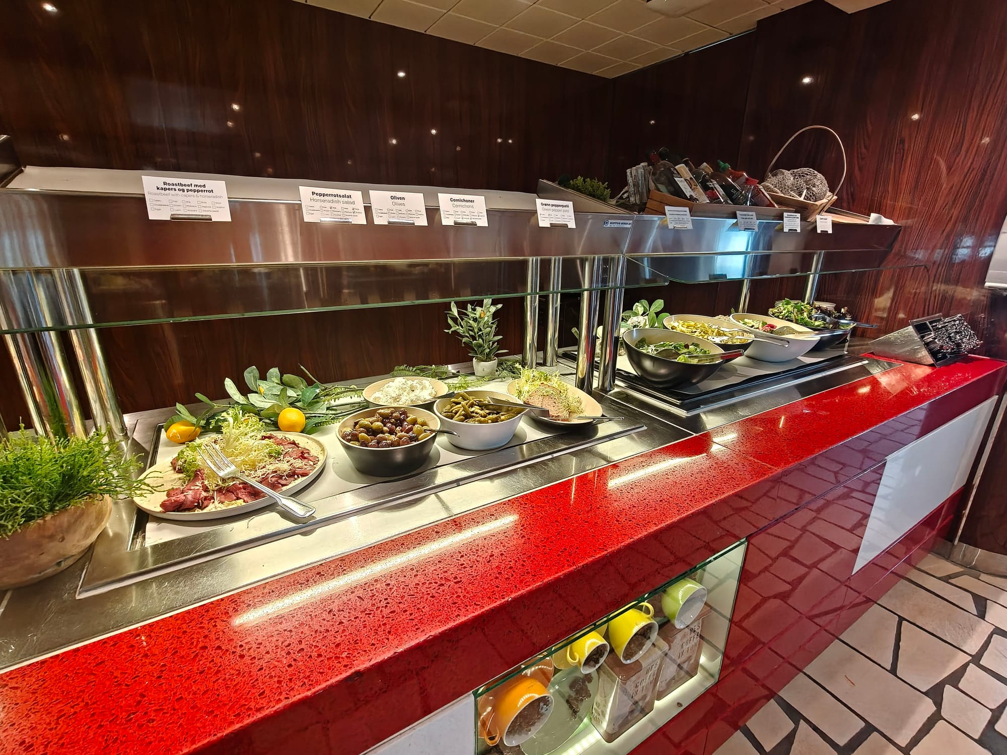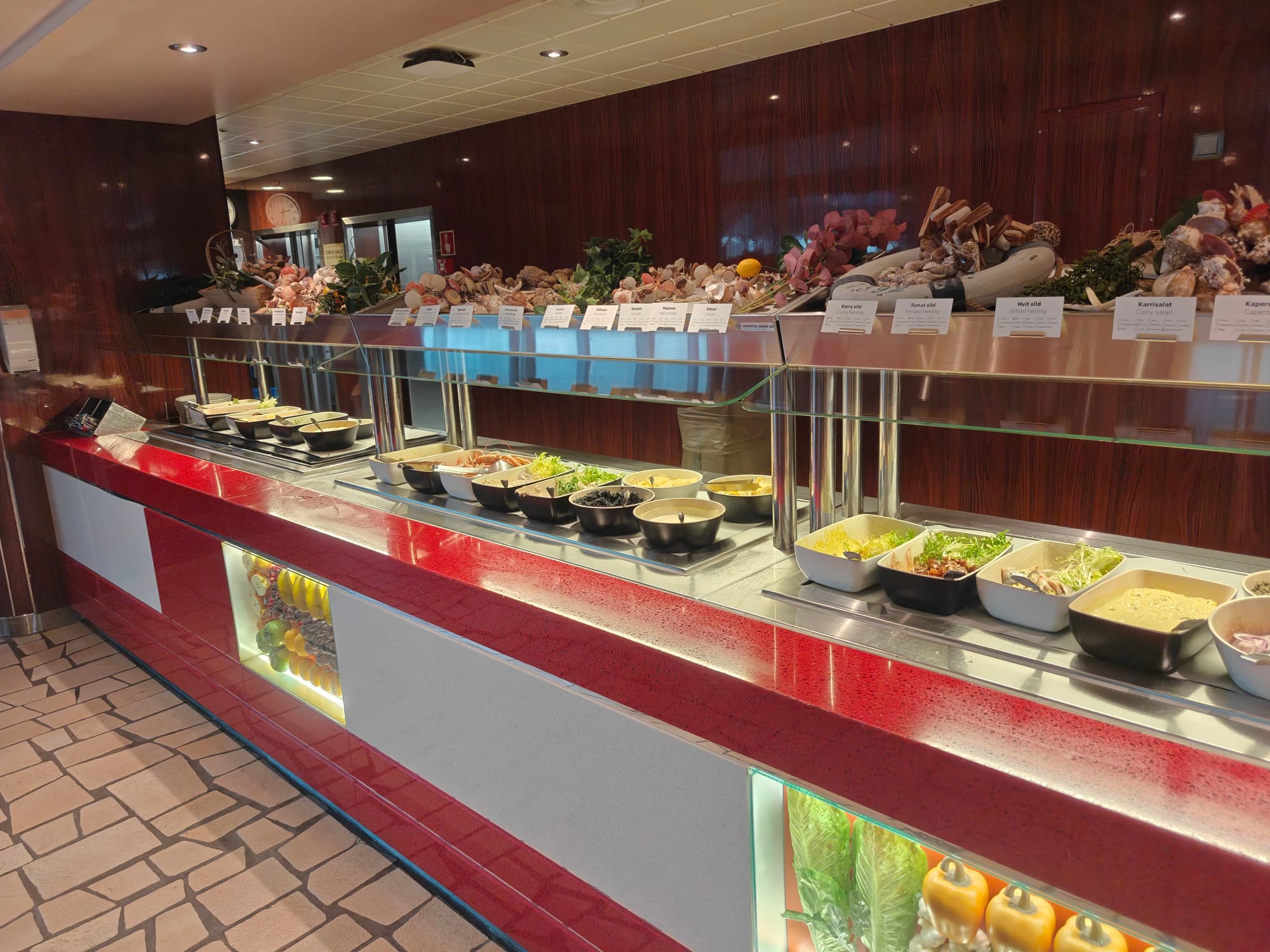 Det mest rellevant for oss var Commander buffet, som serverte frokost,lunsj og middag som buffet altenrativ. Dette er det som nok best passer med det som ofte er inkludert i et cruise. Maten her var kurrant til prisen, ikke det beste, men godt nok.
