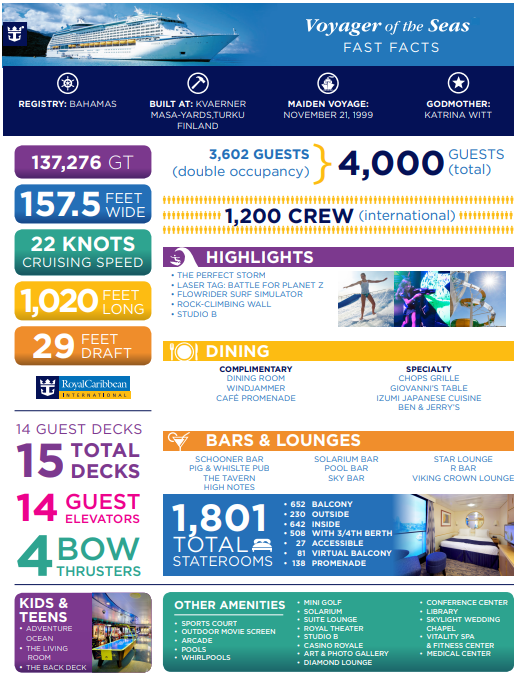 Offisiell informasjon om Voyager of the Seas https://www.royalcaribbean.com/cruise-ships/voyager-of-the-seas